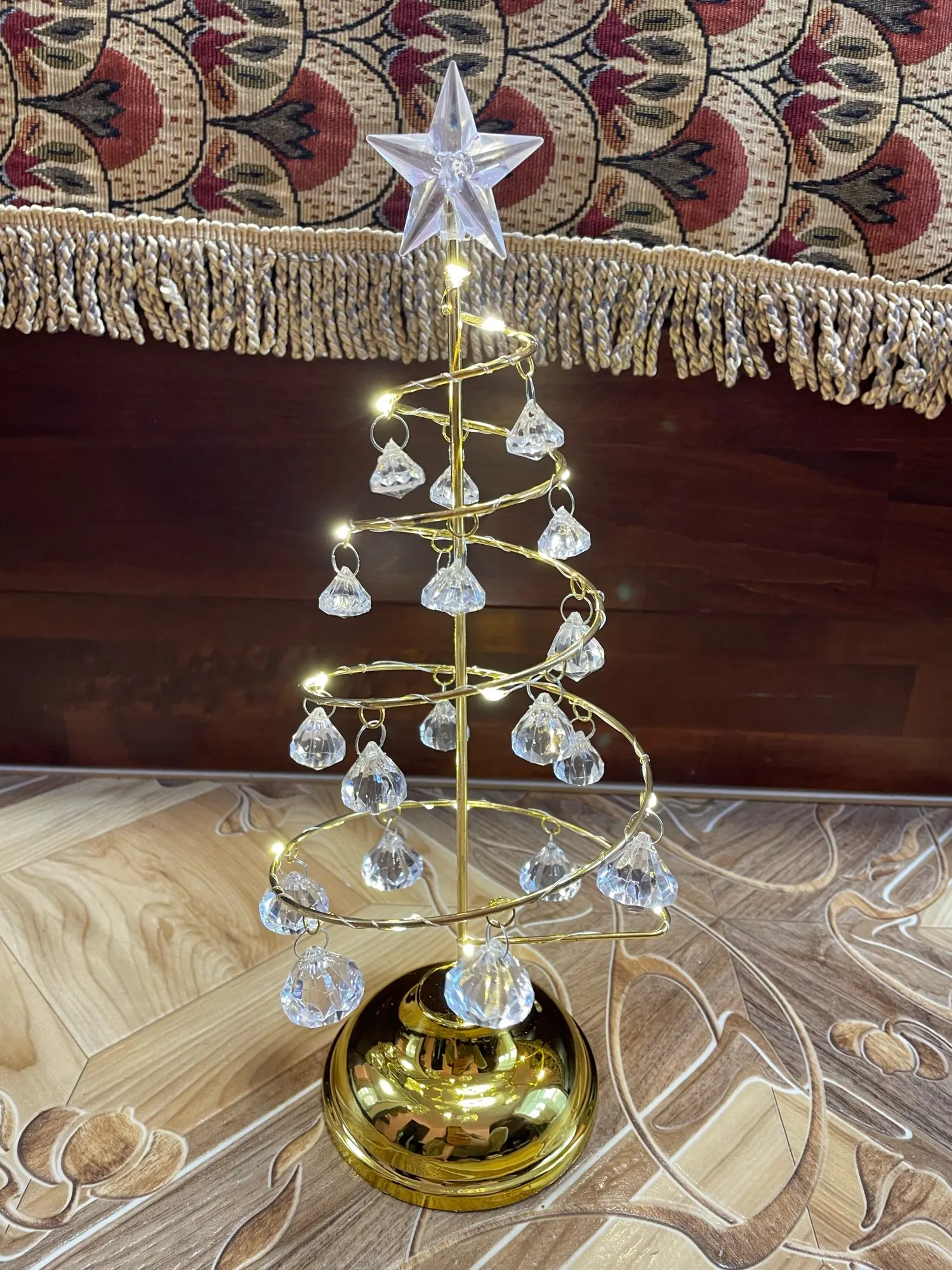 👉 1 Árbol espiral metálico con LED y cristales 33 cm ) en el color elegido.