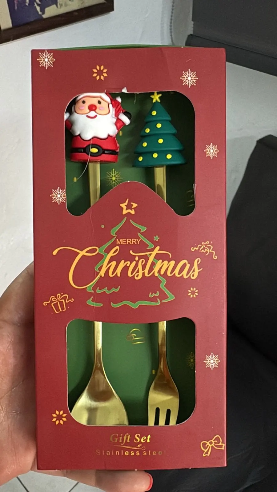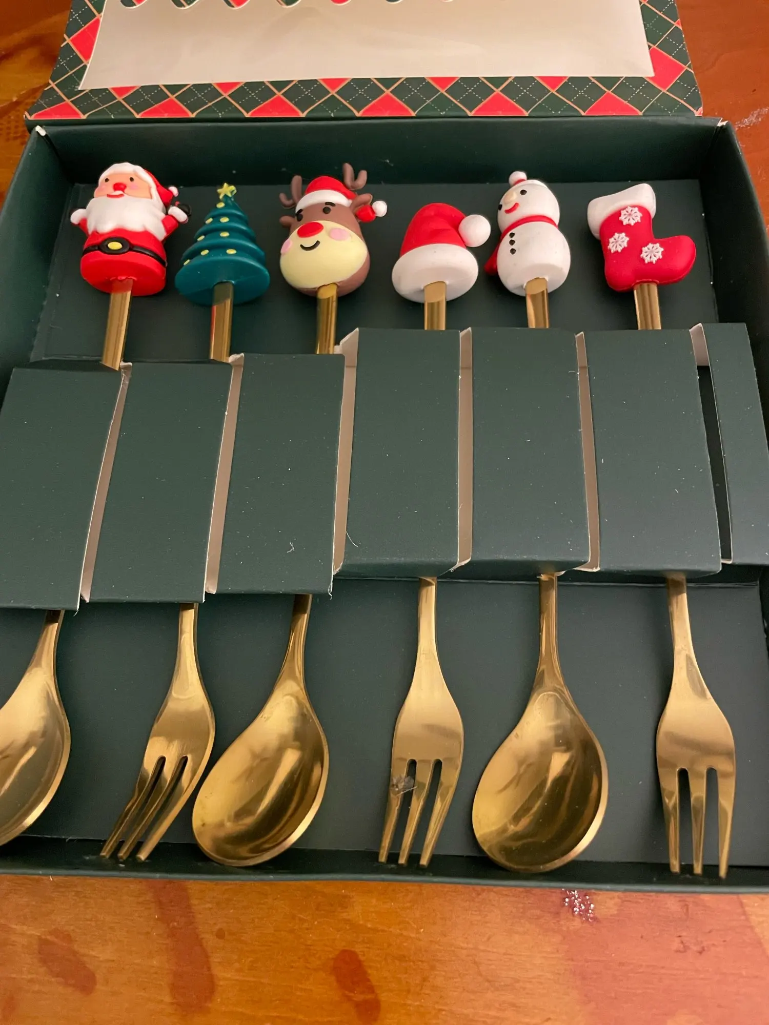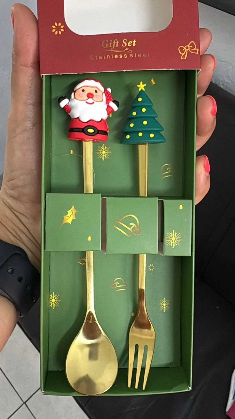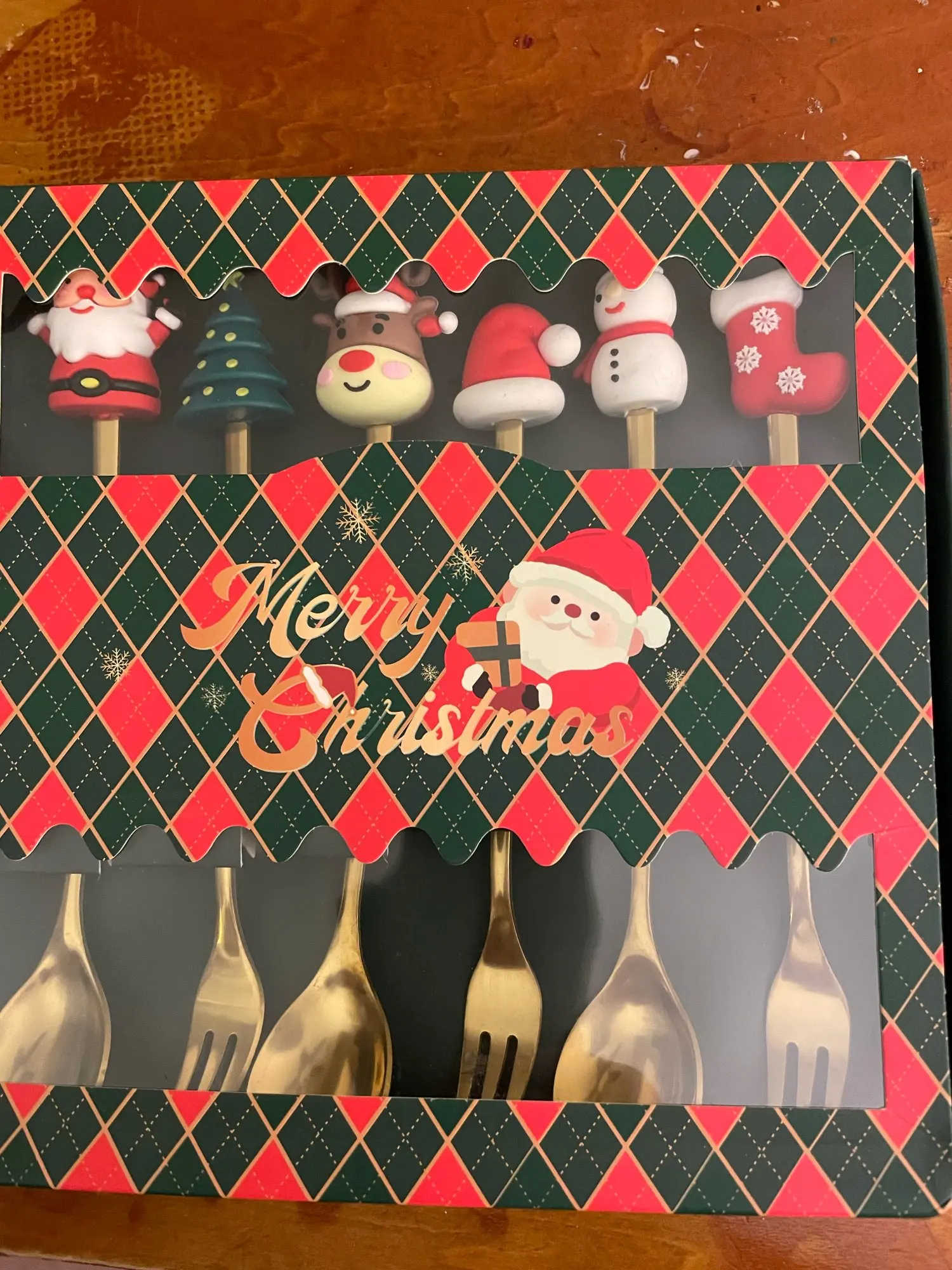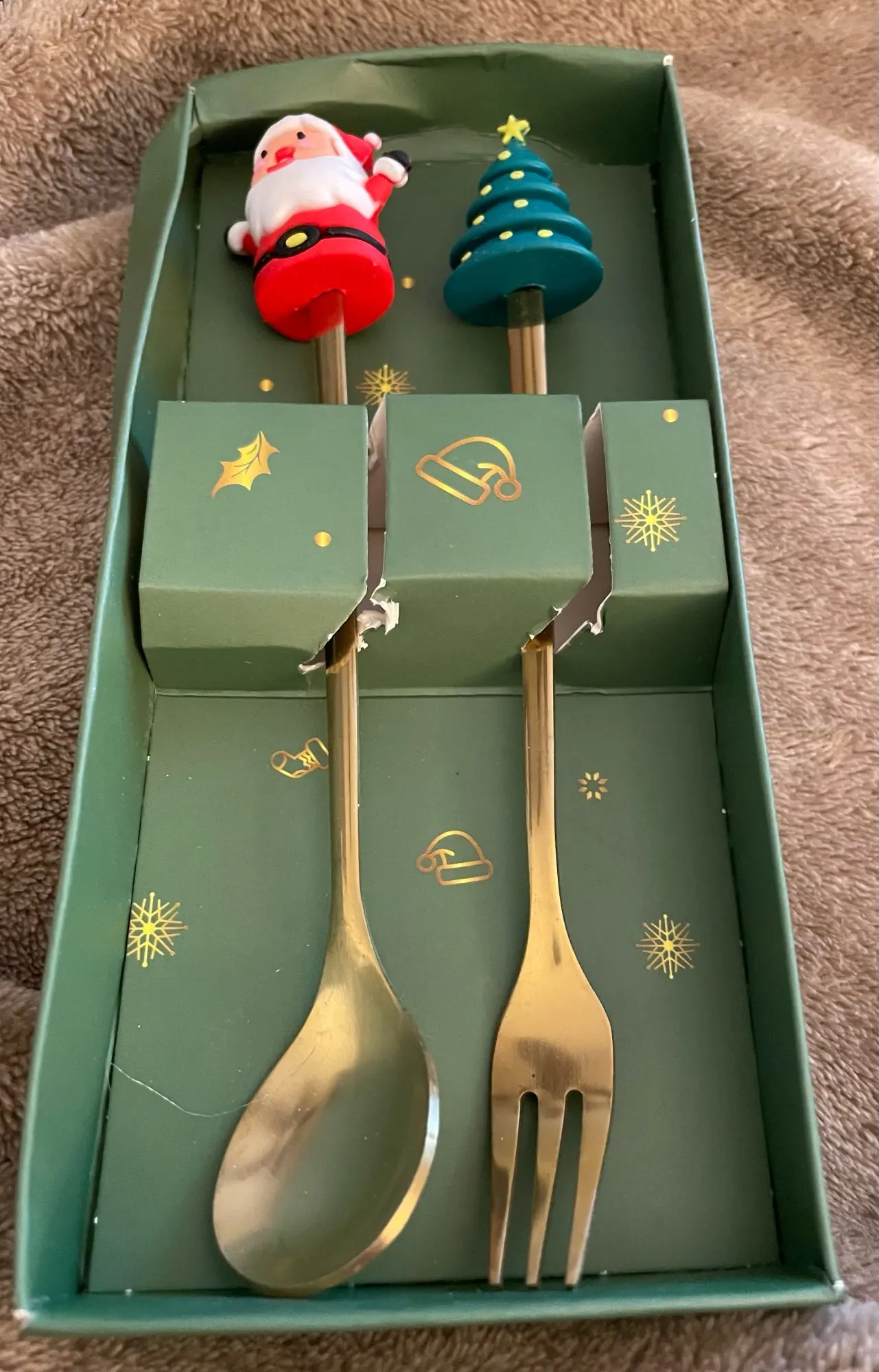 Spoon and fork set with christmas decoration. Perfect for charcuterie trays for christmas. Arrived safe and fast.